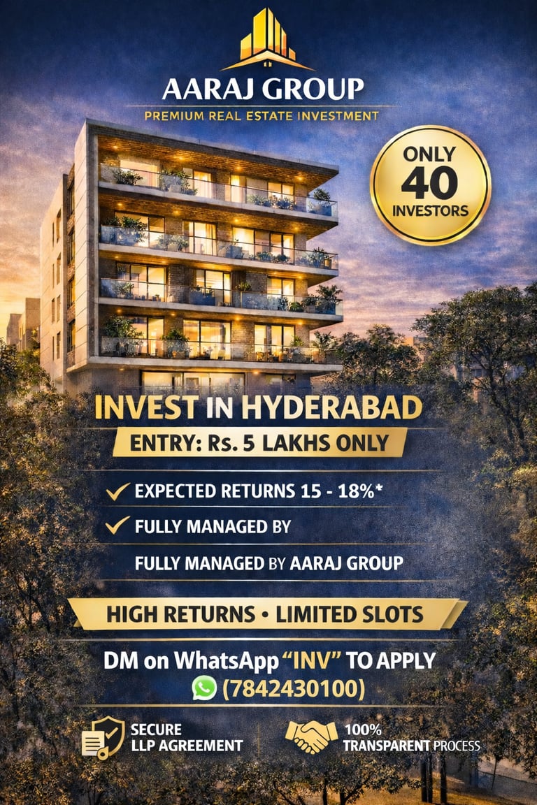 At Aaraj, we offer an alternative approach β structured, project-based real estate investments designed for short- to medium-term participation with defined timelines and transparent execution.